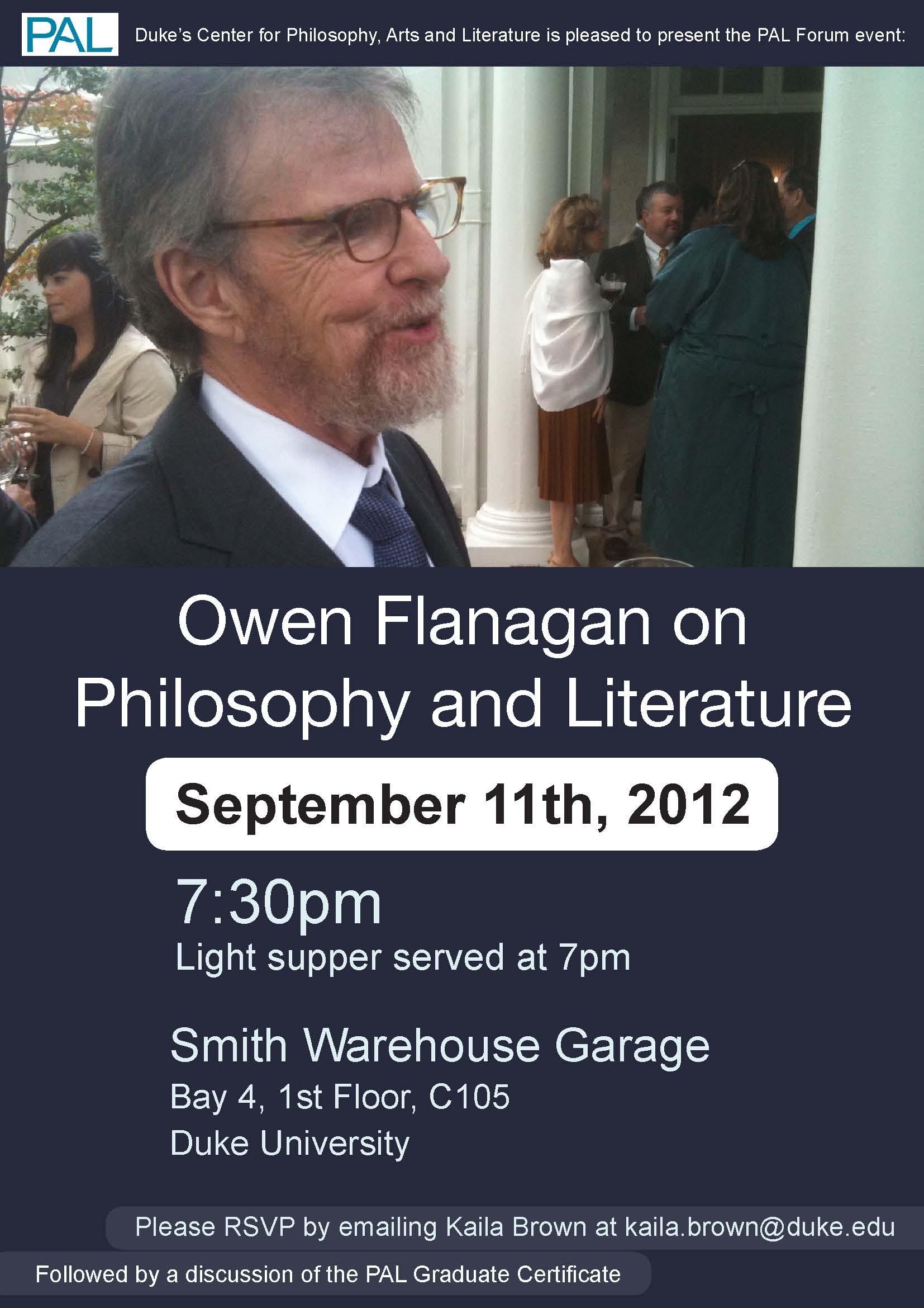 Owen Flanagan kicked off the 2012-2013 PAL event schedule with a lecture on Philosophy and Literature and a discussion of the PAL Graduate Certificate.