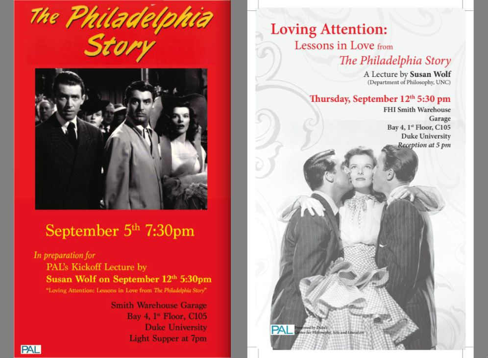 Susan Wolf, UNC’s Edna J. Koury Professor of Philosophy, presents “Loving Attention: Lessons in Love from the Philadelphia Story.” Wolf works chiefly in ethics and its close relations in philosophy of mind, philosophy of action, political philosophy, and aesthetics. She is is currently co-editing an anthology of essays with Christopher Grau titled Understanding Love Through Philosophy, Film, and Fiction.
