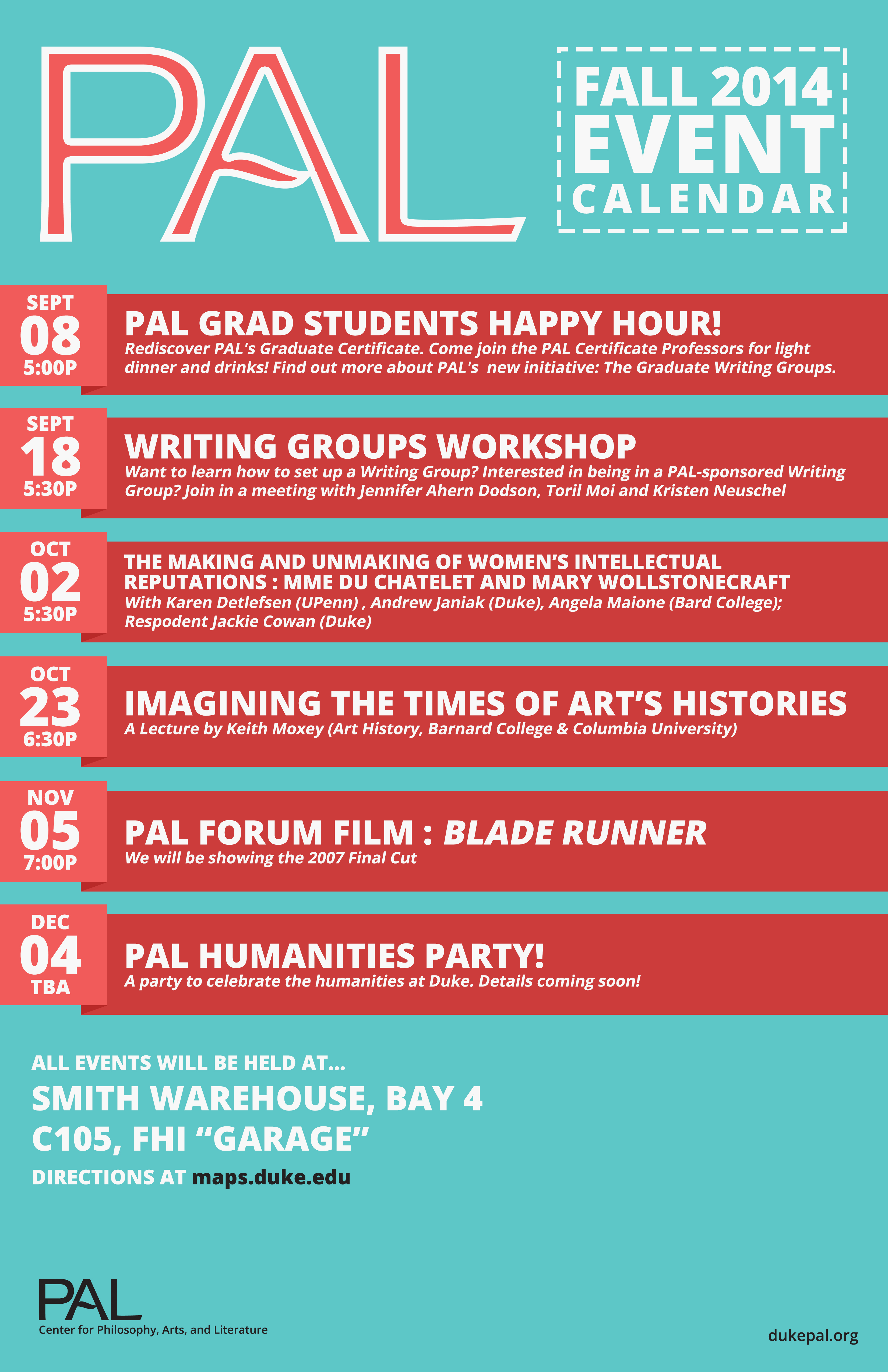 Download schedule as PDF: PAL Fall Events Flyer 2014
