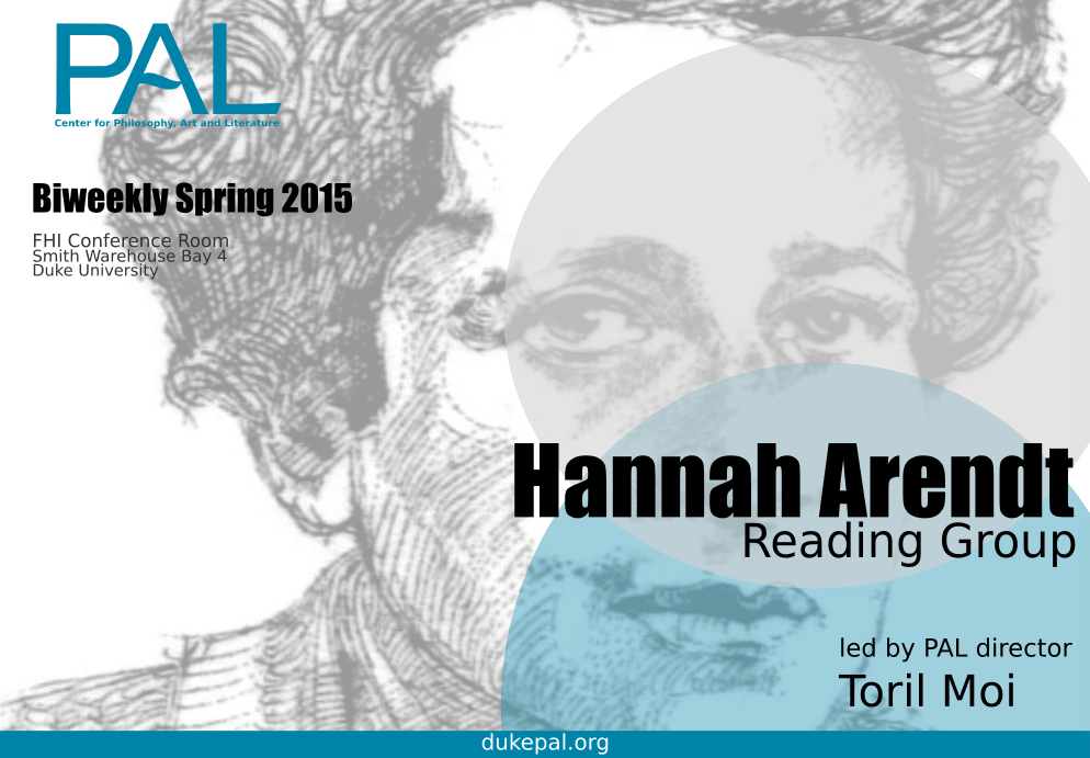 Join PAL director Toril Moi for this biweekly Spring 2015 reading group to read and discuss some of the key works of Hannah Arendt.
