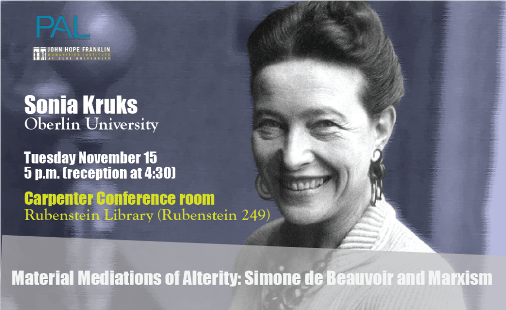 Join co-sponsors, PAL and FHI for Oberlin University’s Sonia Kruks talk, Material Mediations of Alerity: Simone de Beauvoir and Marxism.