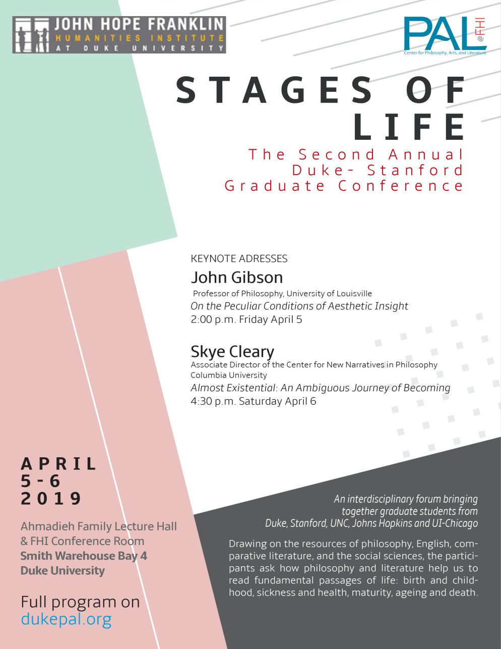 Co-Sponsored by Duke University’s “PAL” (Center for Philosophy, Arts, and Literature) and Stanford University’s “Phil+Lit” (The Initiative in Philosophy and Literature) and