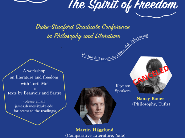 Co-Sponsored by Duke University’s “PAL” (Center for Philosophy, Arts, and Literature) and Stanford University’s “Phil+Lit” (The Initiative in Philosophy and Literature) and Hosted by The Franklin Humanities Institute at Smith Warehouse, Duke University Friday April 5th, Ahmadieh Lecture Hall (Bay 4) of Smith Warehouse 2:00-2:30 Welcome and Mingling 2:30-2:45 Welcome: Toril Moi(James B. Duke Professor of Literature and…Read more